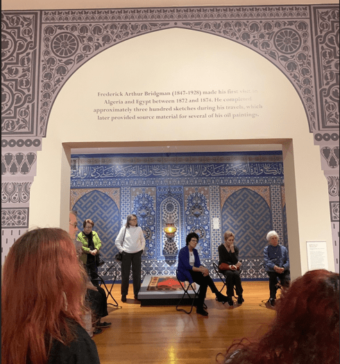 Geometric design in Islamic art is both mathematical and spiritual. Patterns begin with simple shapes, a circle, a square and expand into stars, polygons, and endlessly interlocking systems. There is no beginning and no end. Lines pass over and under one another, forming unity through repetition and symmetry. These patterns symbolize infinity, a reflection of the divine. Across wood, tile, metal, manuscript, and architecture, geometry becomes a universal language that transcends region, ethnicity, and time. In this section, viewers were invited to look closely and experience how patterns become meditation.