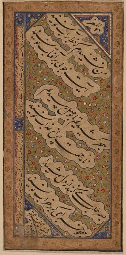 Figural representation in Islamic art is complex and varied. While religious spaces often avoided imagery, secular settings, manuscripts, palaces, courtly albums embraced it. In this section, the traditions of Arab, Persian, Turkish, and Mughal miniature painting were explored. Particularly important to our collection are works on paper connected to the Herat School of the 15th century in present day Afghanistan. Under the patronage of Shah Rukh and his son Baysunghur, Herat became one of the most important artistic centers of its time. The great master Kamal Uddin Behzad led a workshop known for refined brushwork, vivid mineral pigments, and highly developed compositions.