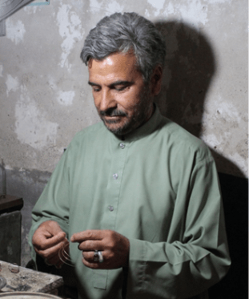 Haji Ghulam Reza Jawaheri is one of the well-known contemporary accomplished and distinguished Goldsmith masters based in Herat. He is 75 years old and has been working as a professional goldsmith master for nearly 50 years. However, his father Ghulam Haider and Grand-father Ghulam Hassan were considered as one of the renowned and professional masters of goldsmith in Herat. From the very beginning, he learned this craft under his father’s close supervision and later on kept practicing this craft with his uncle’s workshop Haji Rahmat Jawaheri in the old city of Herat.