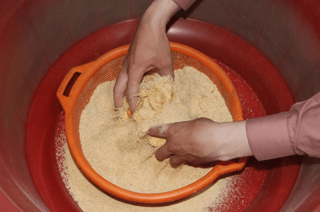 2- The gold will be placed in hot Hydrochloric acid for 4 to 5 minutes and then put in cold water to make a shine and looks whitened.